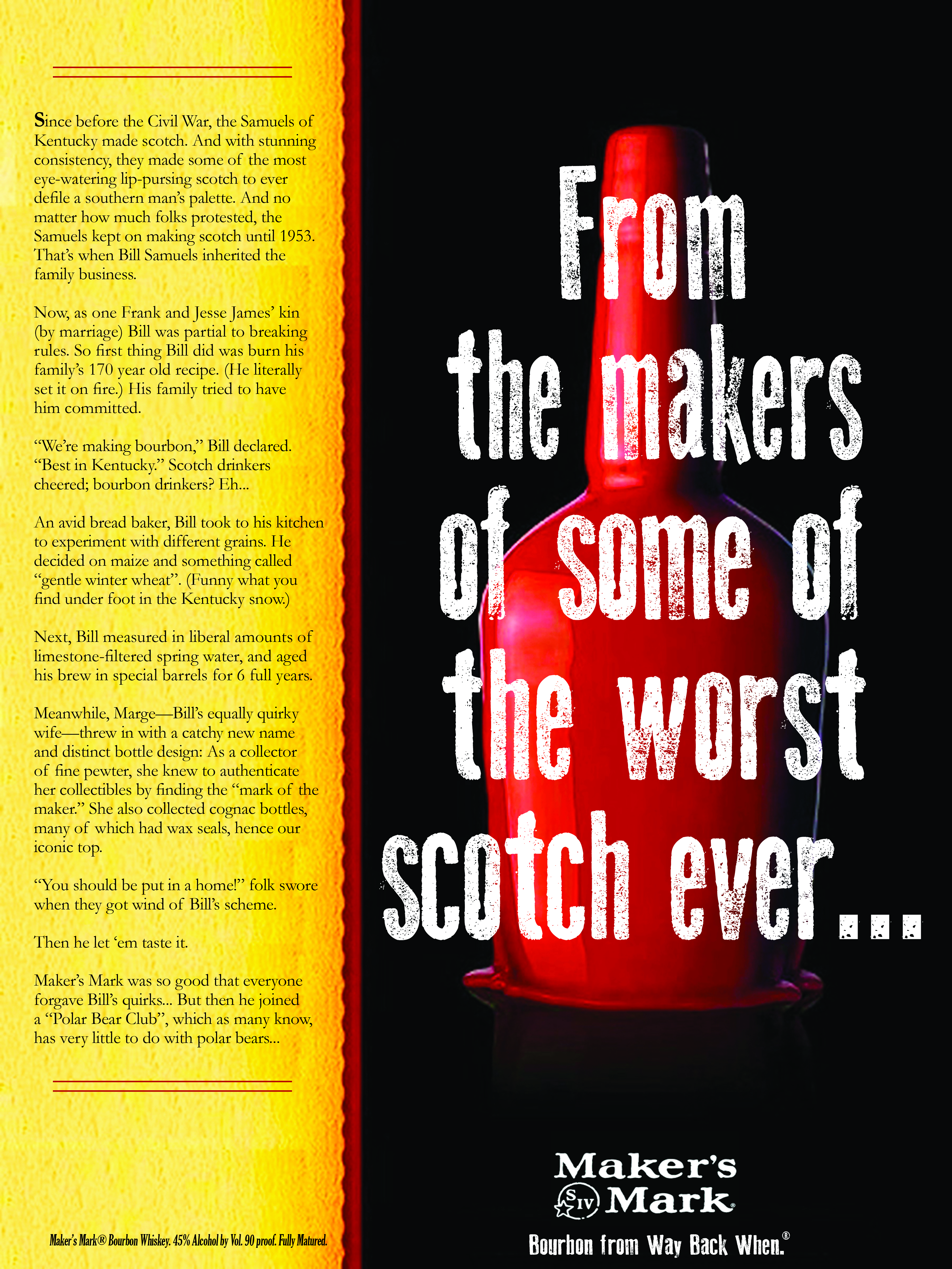 Maker’s Mark was started by a guy who frequently walked around town butt-naked. He set the family’s prized recipe on fire. His family tried to put him in an insane asylum. He got out, made the best whiskey in Kentucky.