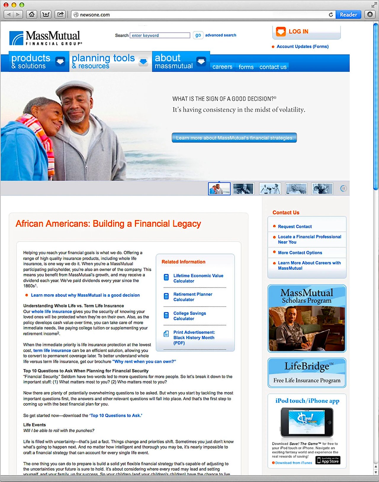 So we gave MassMutual a site that showcased its capacity to protect AA’s Future, Legacy, & Business via products and education modules. Then we spread the word 360º style.