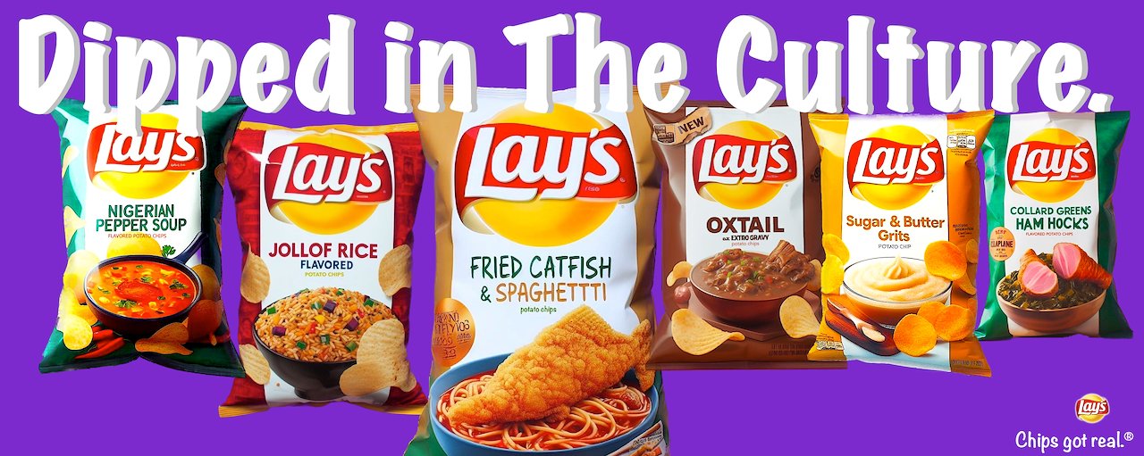 Our new Lay’s chips are dipped in the culture. Flavors born of some of our most beloved cuisine from African American culture and across the African Diaspora. It’s not just our flavor, it’s our culture! Chips just got real.